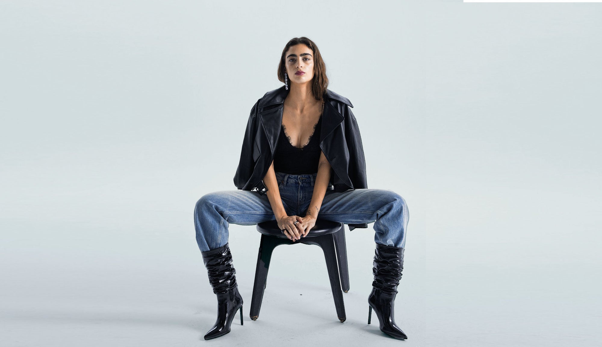 The MAGIA jacket reimagines a classic biker silhouette with a striking oversized cut and sharp tailoring. Crafted from premium lambskin leather, it features defined shoulders with epaulettes, wide notch lapels, and a structured waist with a matching belt for adjustable styling. Whether worn open for a laid-back effect or cinched to accentuate the silhouette, its clean construction and full lining make it a standout layer with both edge and elegance.